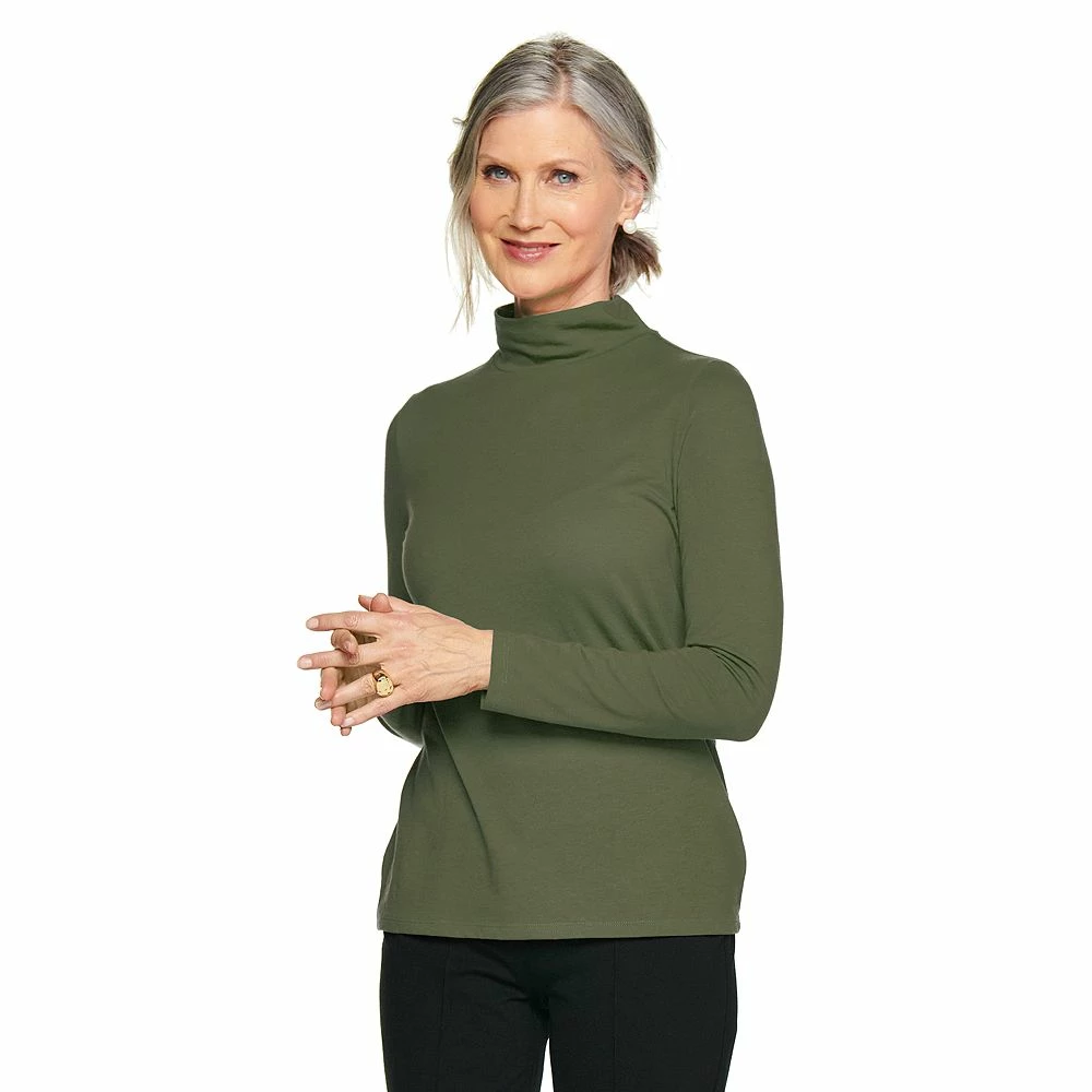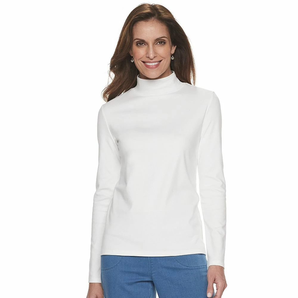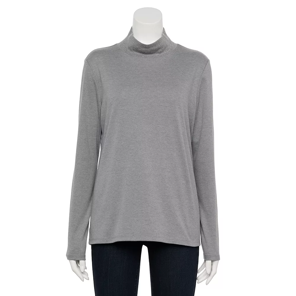 You’ll look great in this petites’ Croft & Barrow mockneck top.