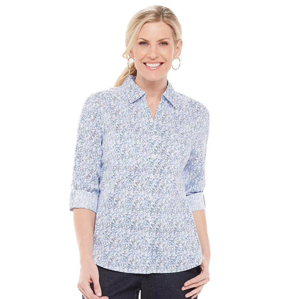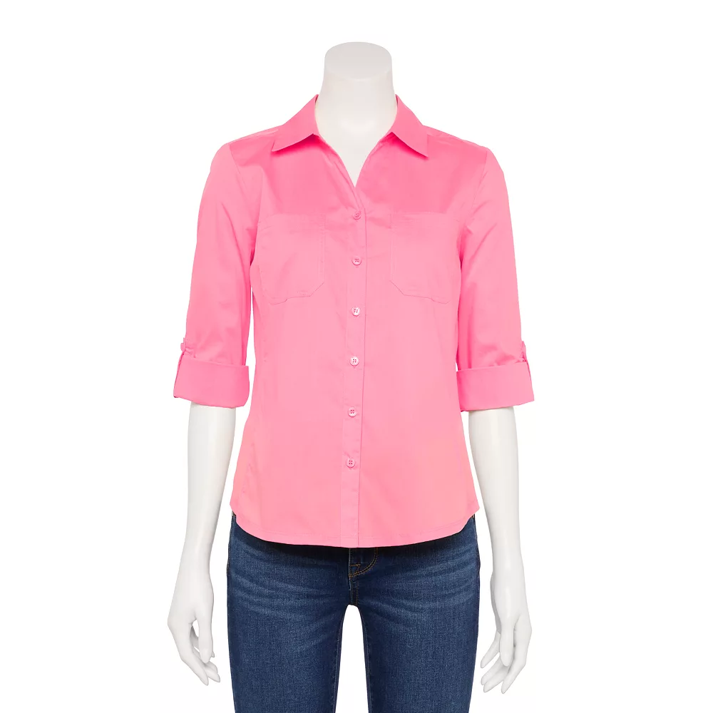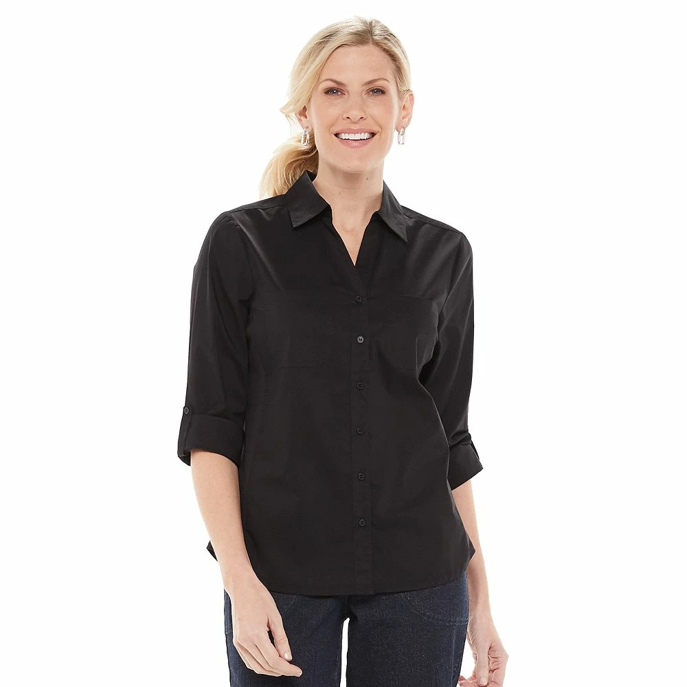 Update your casual wardrobe with this petites’ Croft & Barrow knit-to-fit shirt.