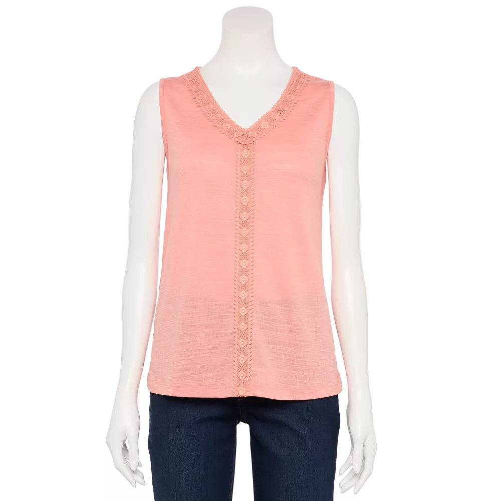 You’ll love the casual style of this petites’ lace-trim tank top by Croft & Barrow.