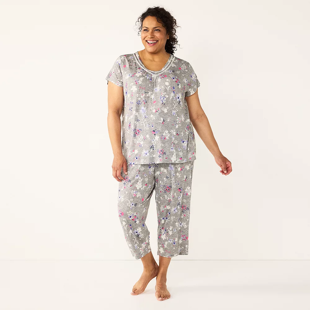Drift off to sleep in complete comfort while wearing this matching women’s Croft & Barrow short sleeve pajama top and cropped pajama pants set.