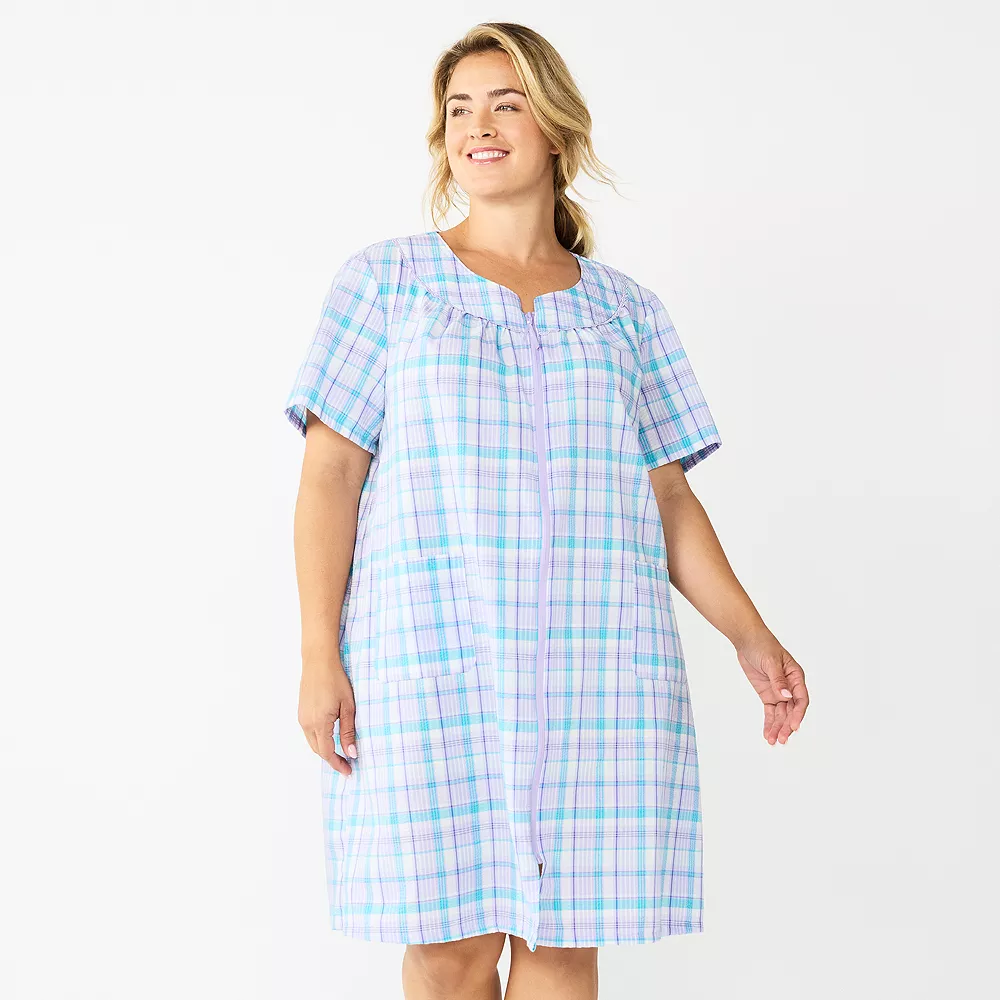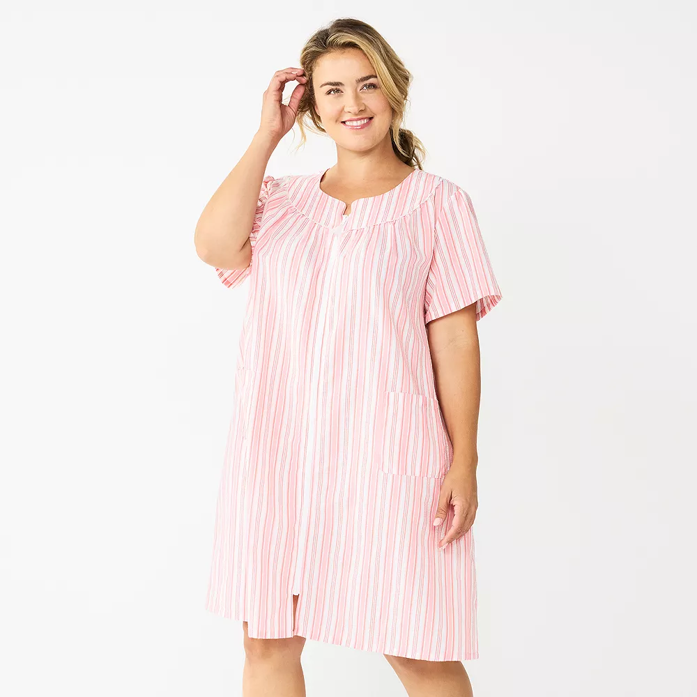 Featuring a soft woven construction, this women’s Croft & Barrow short sleeve zippered duster makes lounging a dream.