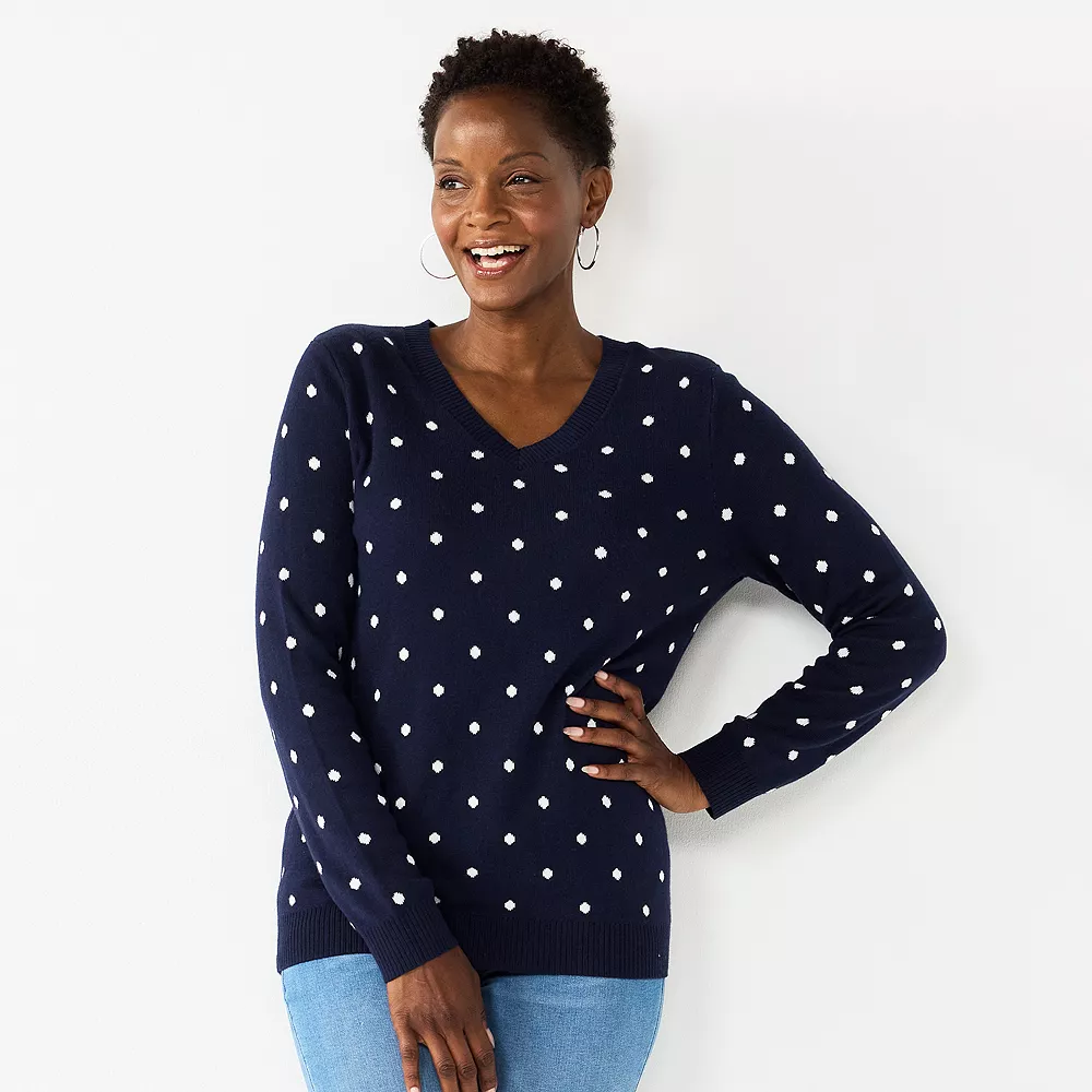 You’ll love the classic comfort and style of this women’s Croft & Barrow V-neck cable sweater.