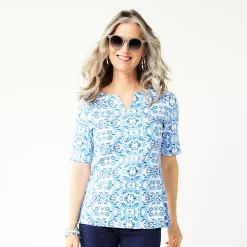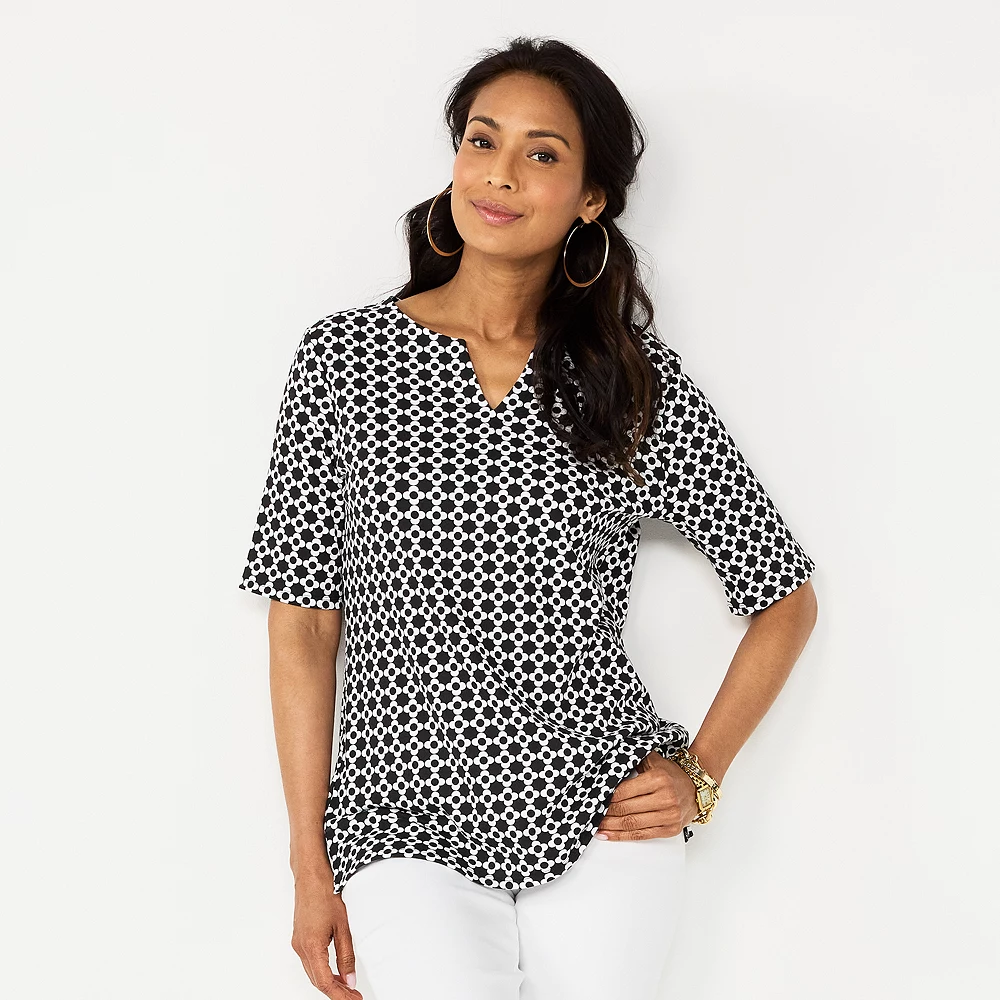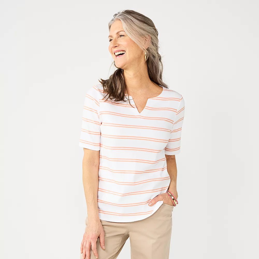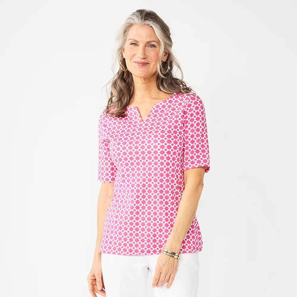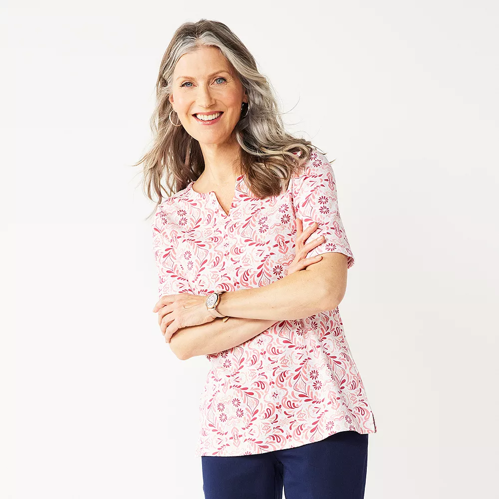 Upgrade your casual essentials with this women’s Croft & Barrow splitneck tee.