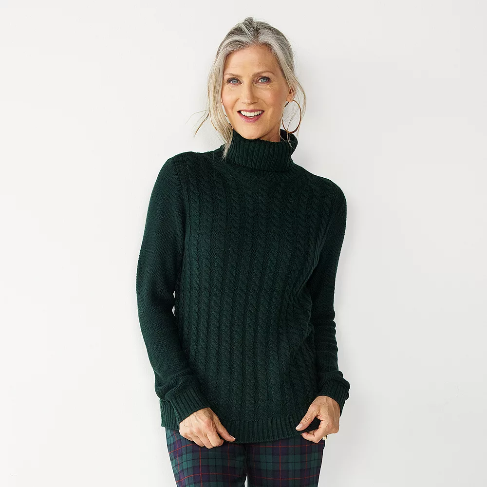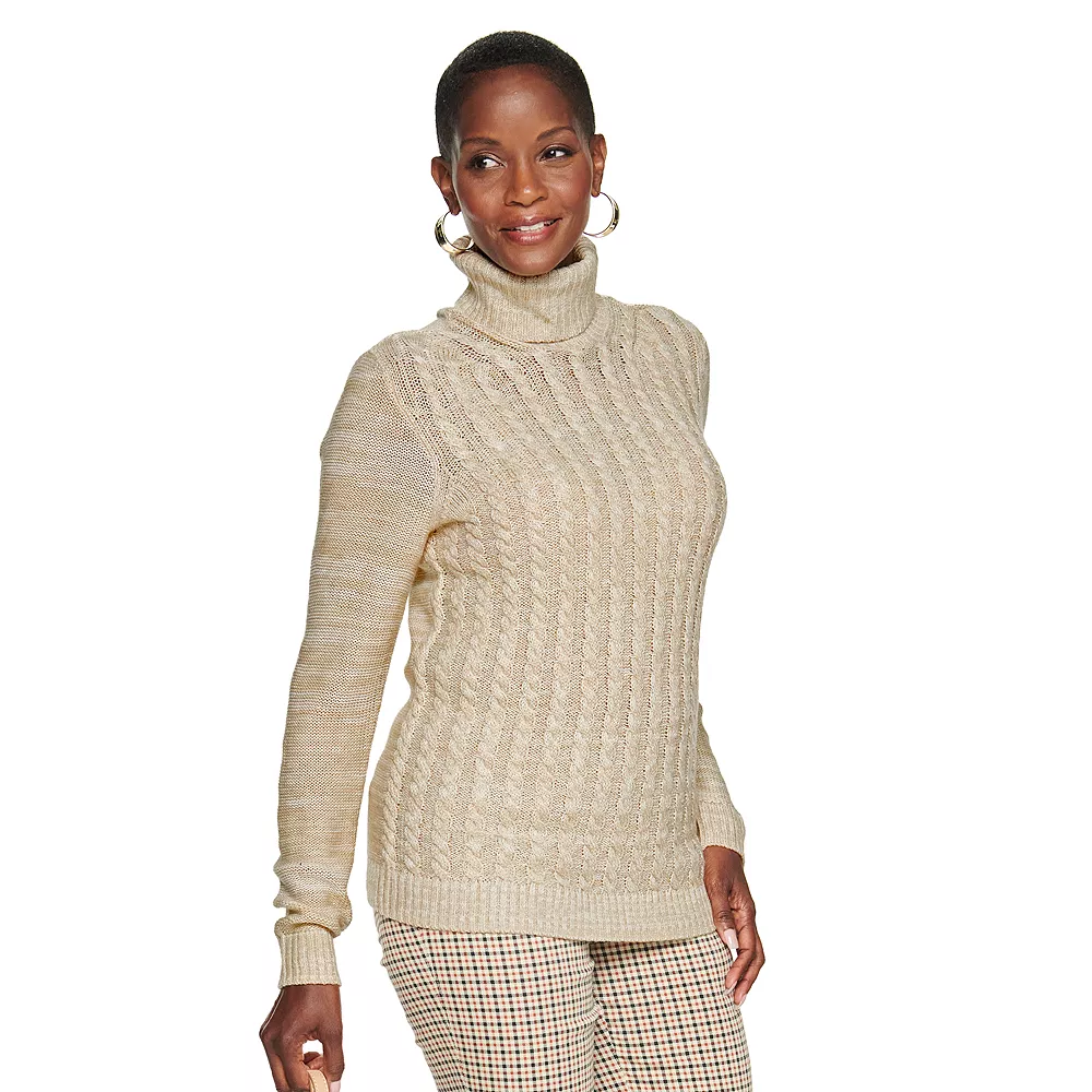Upgrade your fall fashion with this women’s Croft & Barrow cable-knit turtleneck sweater.