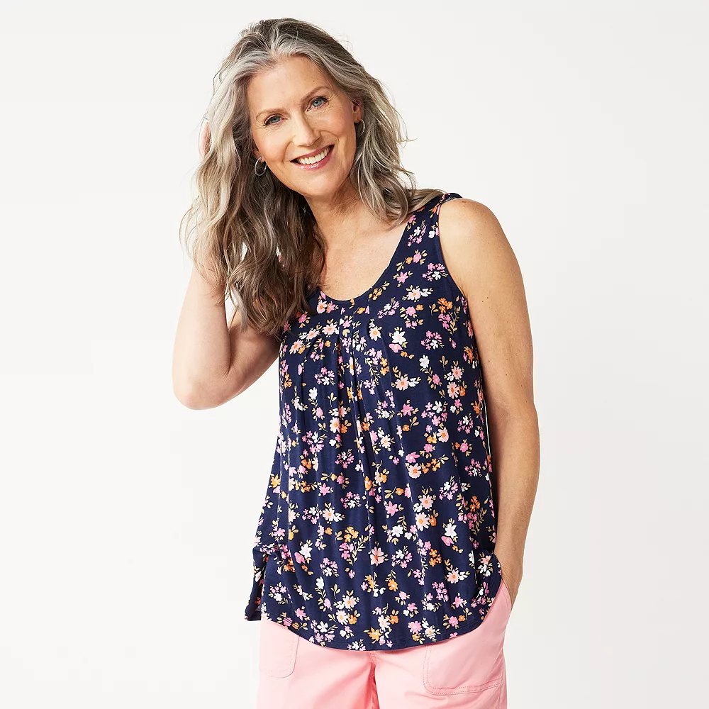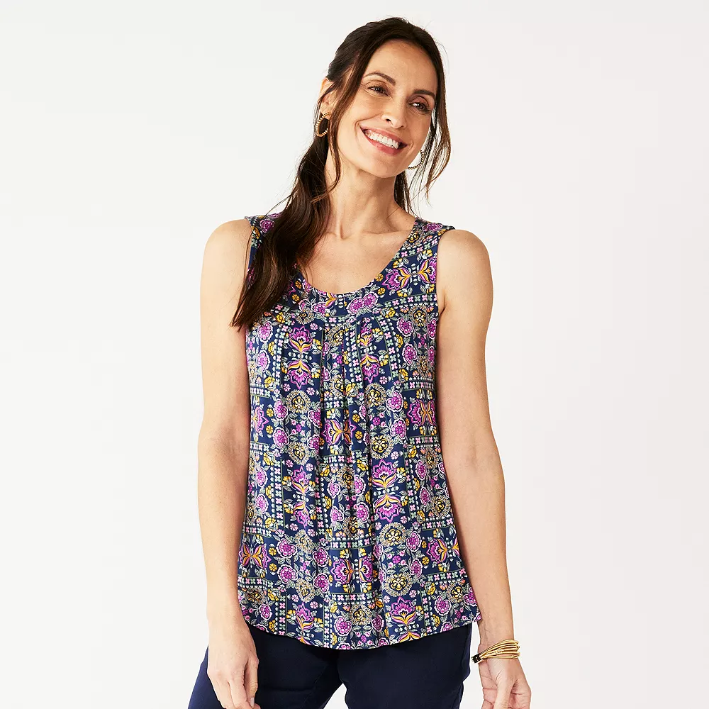 Pleated details and a draped design combine to give this women’s Croft & Barrow tank top a great casual look.