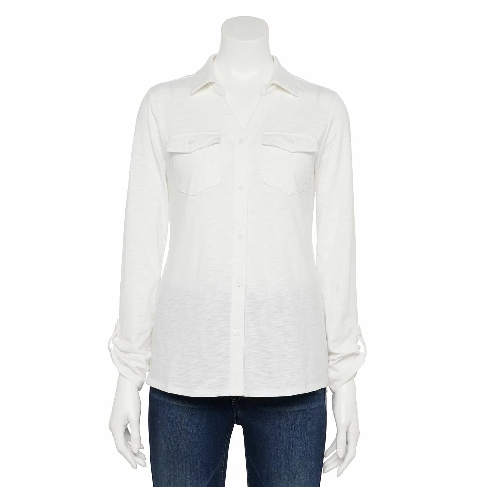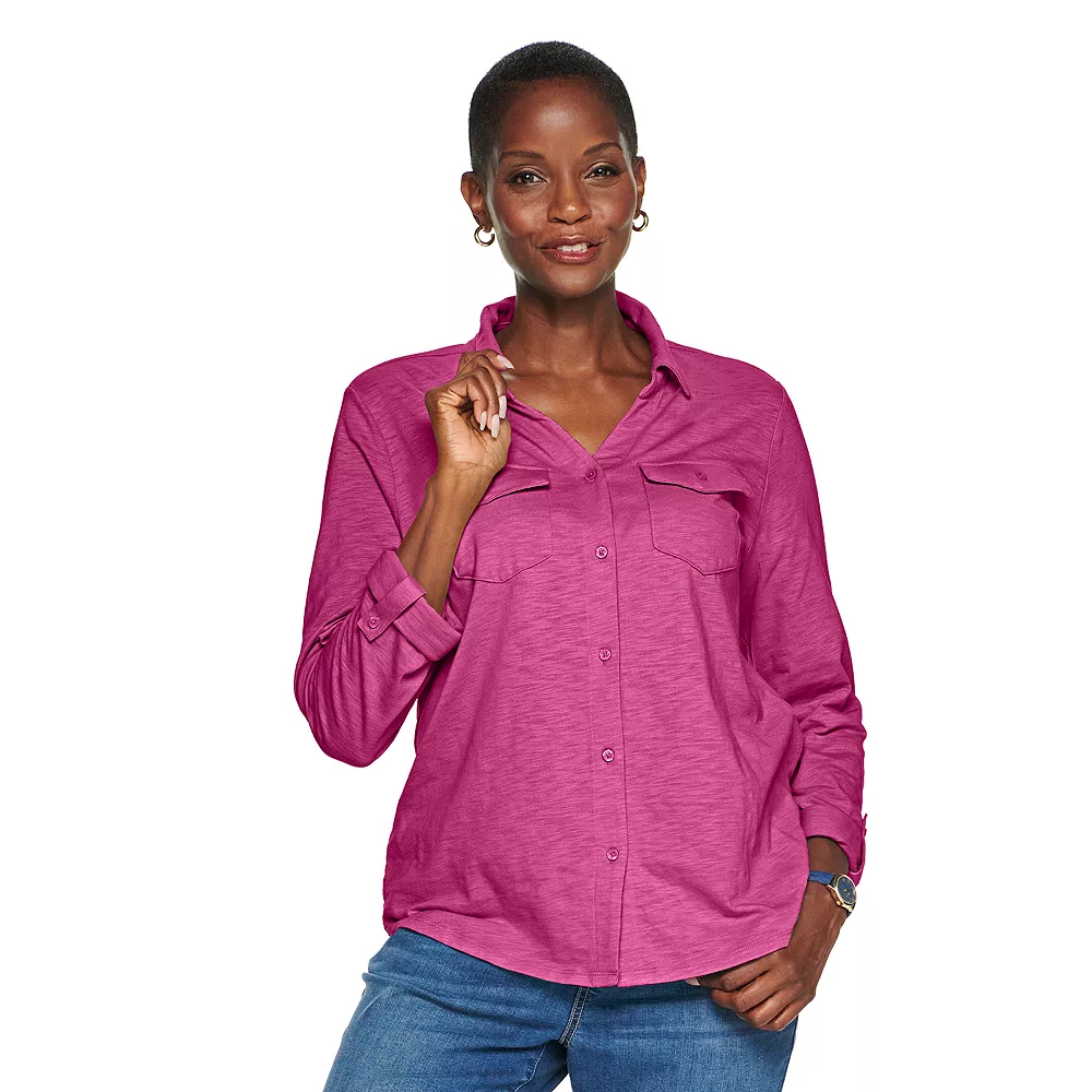 You’ll love the ultra soft feel and roll-tab sleeves of this women’s shirt from Croft & Barrow.